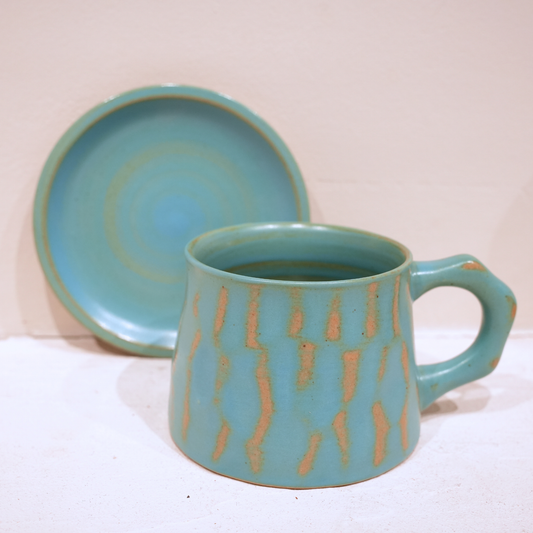 Tasse à Café avec Soucoupe – Collection Vert Paon (250 ml)
