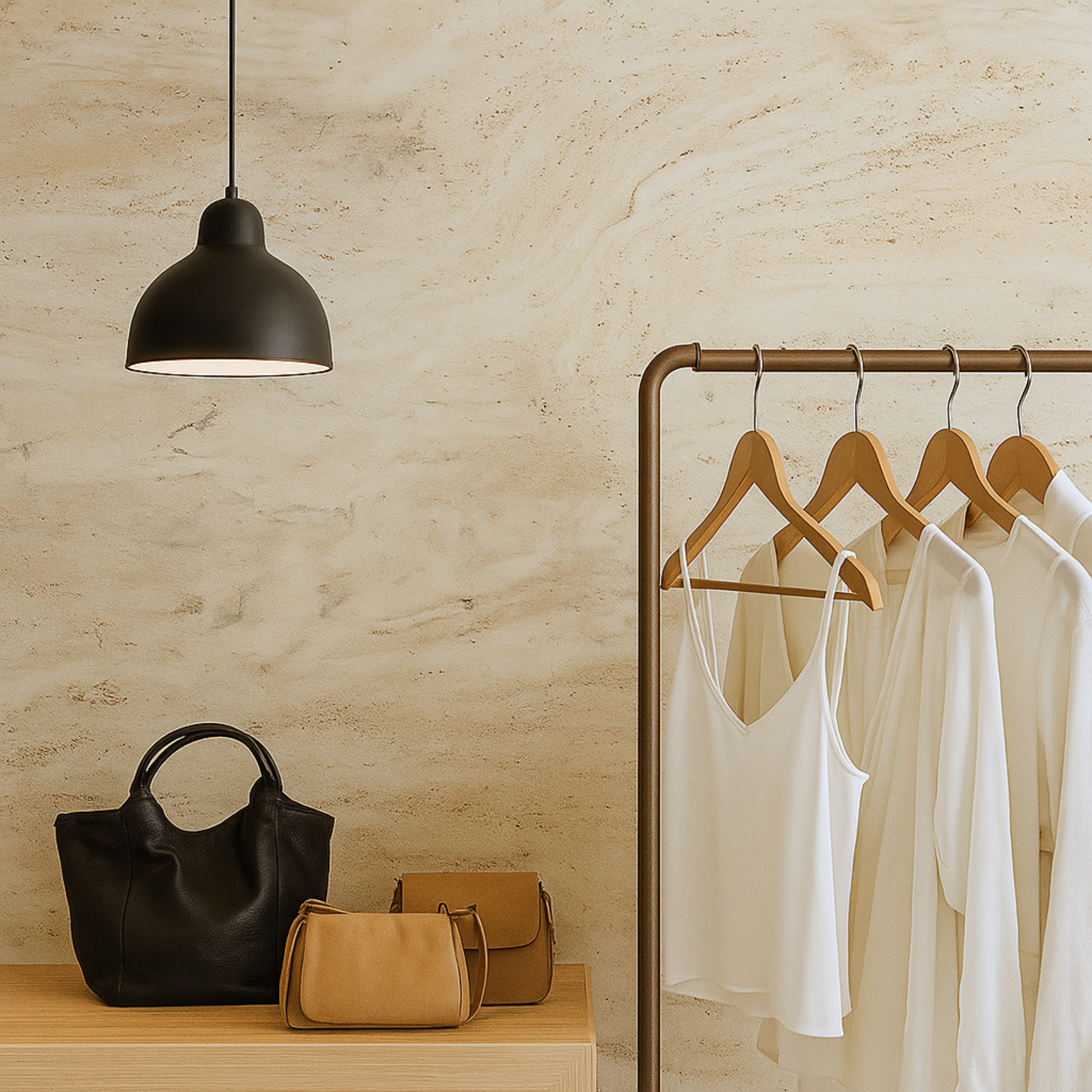Ces panneaux muraux souples reproduisent fidèlement les nuances beiges, les veines irrégulières et les micro-porosités caractéristiques du travertin naturel. Leur rendu minéral haut de gamme apporte une ambiance méditerranéenne douce, idéale pour les intérieurs modernes, wabi-sabi, japandi ou boutiques de prêt-à-porter.