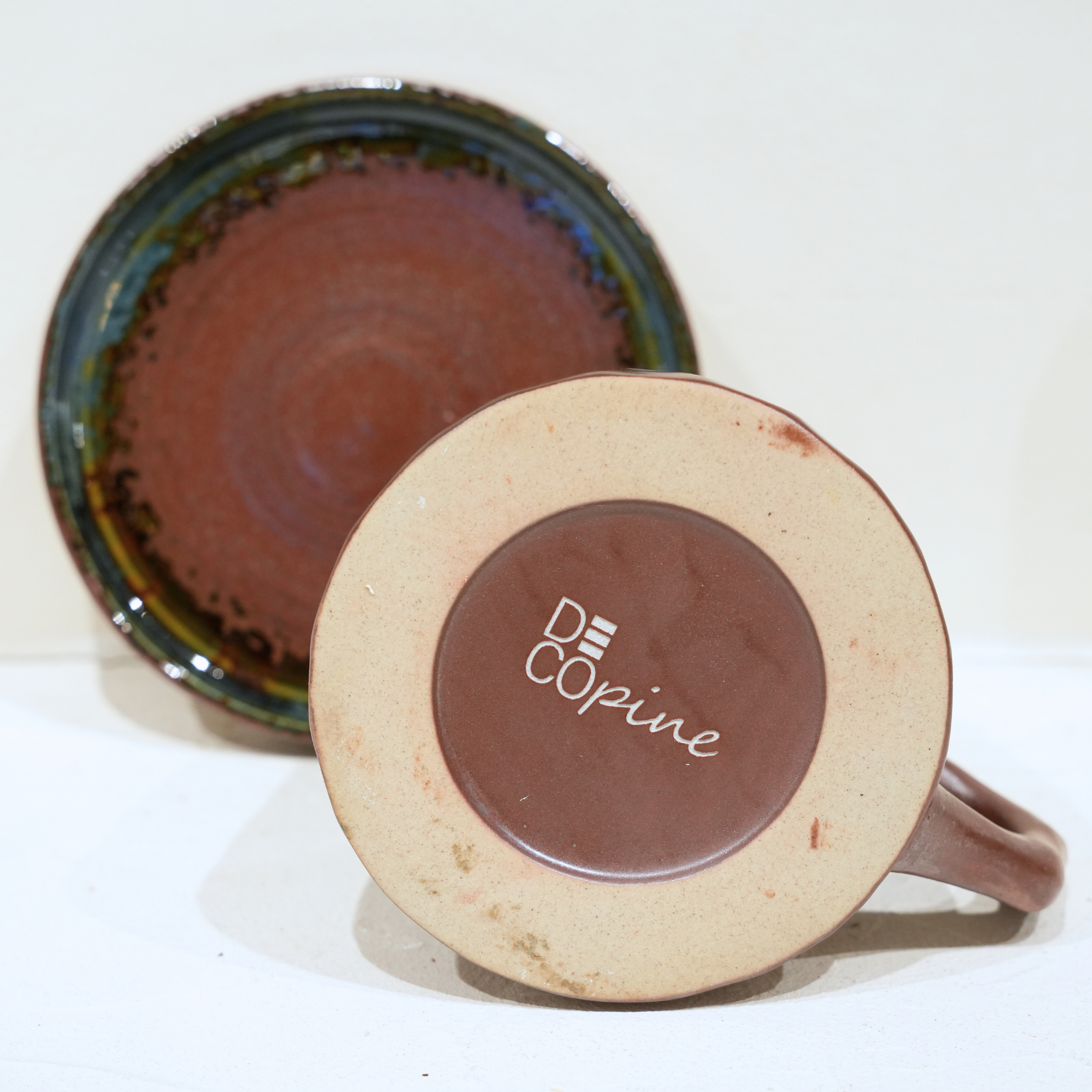 Cette tasse Decopine associe un émaillage bleu profond à une base argile rouge naturelle, créant un contraste à la fois minéral et élégant.