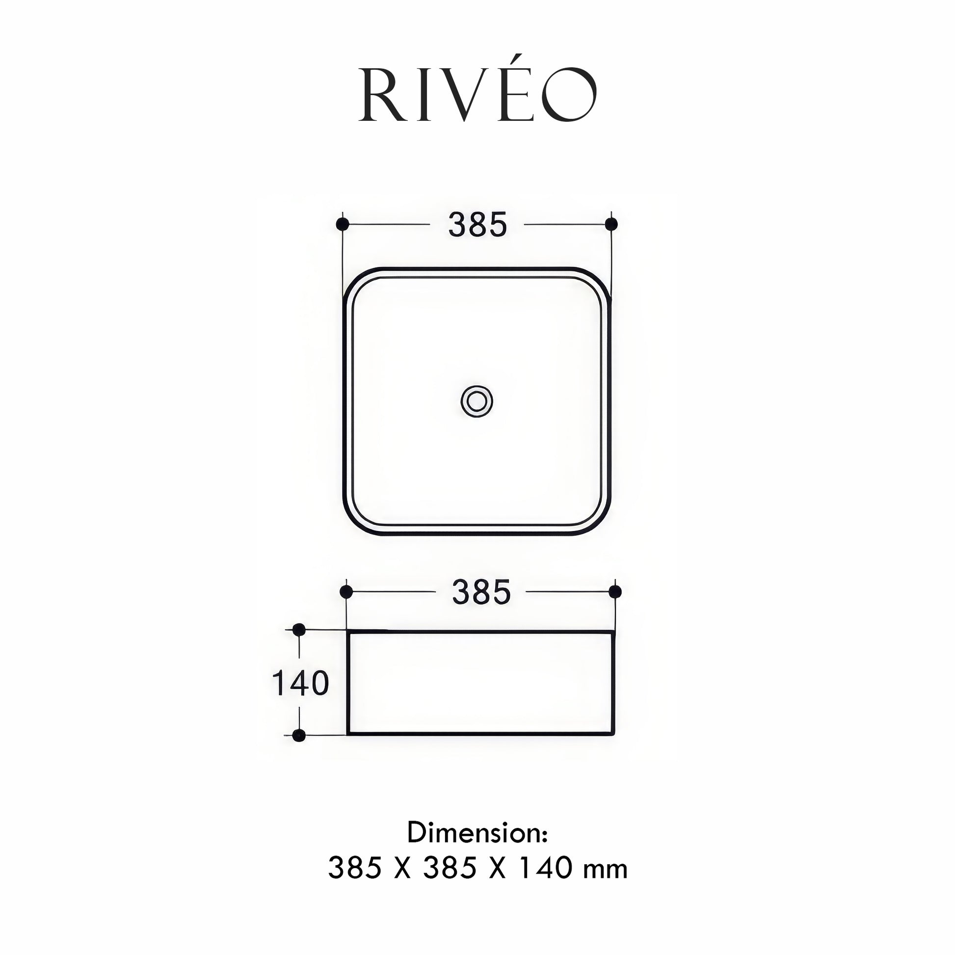 Vasque à Poser Carrée Arrondie RIVÉO – 385 × 385 mm – Avec Bonde
