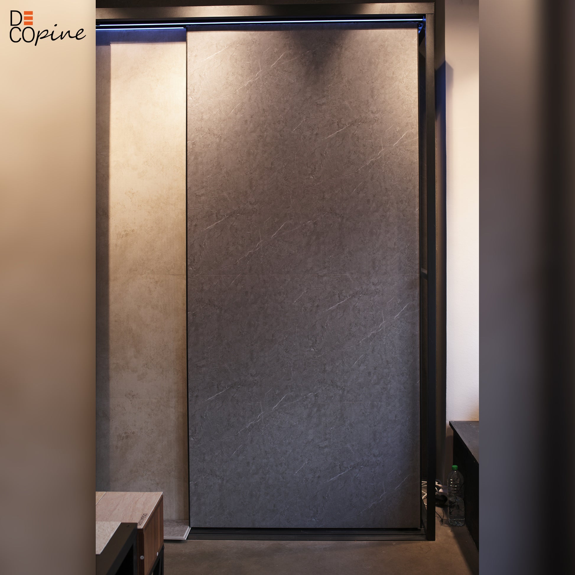 Son aspect minéral réaliste évoque la pierre naturelle tout en offrant une finition douce et uniforme, idéale pour un intérieur chic et apaisant.