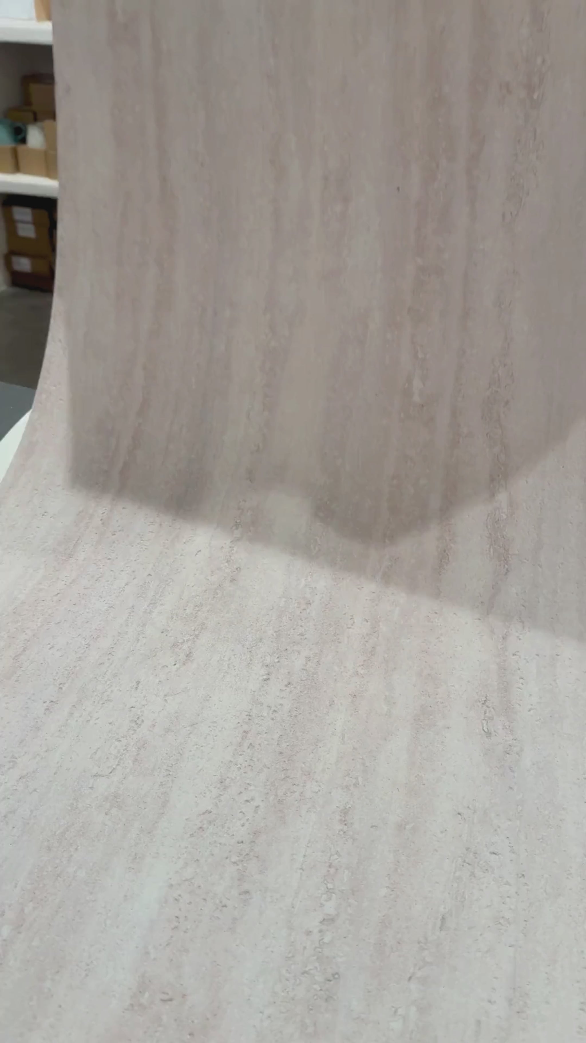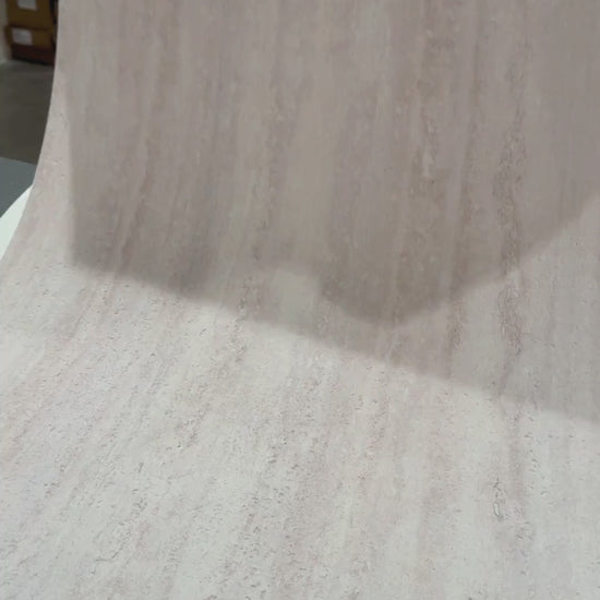 La teinte gris beige, aux nuances douces et équilibrées, associée au motif travertin, apporte chaleur et luminosité.