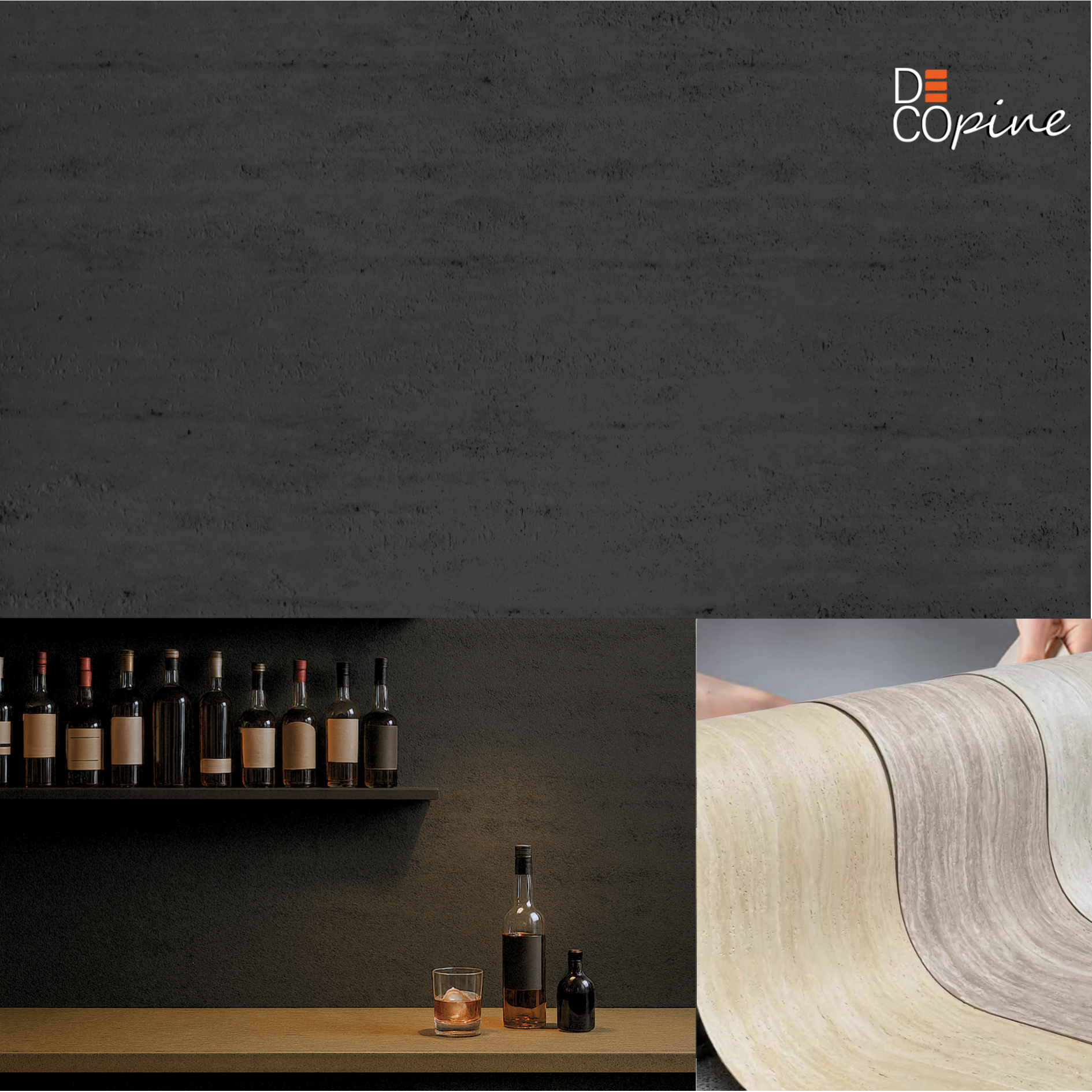 Les panneaux muraux souples Decopine sont fabriqués à partir de poudre de pierre naturelle véritable, pressée puis cuite à haute température.